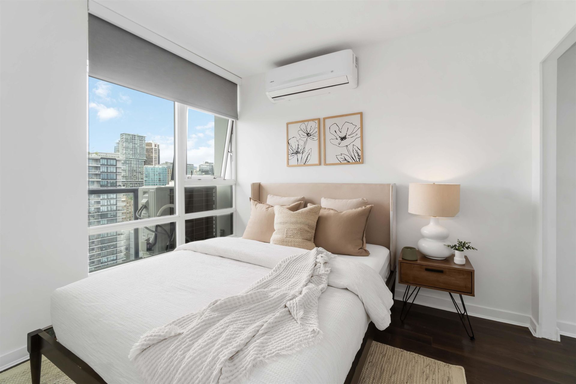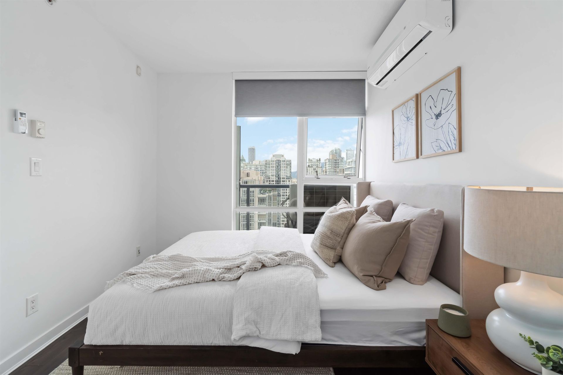 VIEW Property! Welcome to the ICONIC MAX by Concord Pacific. In the heart of VANHATTAN—Yaletown at your doorstep. This gorgeous & rarely available 35th floor 1-bedroom checks all the boxes: 1 parking, generous bedroom, large den, full bath, flex space for office/guests, ample closets, A/C in unit! Chef’s kitchen with gas cooking, granite counters & tons of cabinets. Full appliance package. AMAZING WATER, MOUNTAIN & CITY LIGHTS VIEWS from bedroom, balcony & living room. Beautiful flooring. Strata fee includes gas, gym, party room, sauna, pool & doorman. Pets & rentals allowed. First Showings at the OPEN HOUSE: May 31 & June 1, 2–4 PM.
