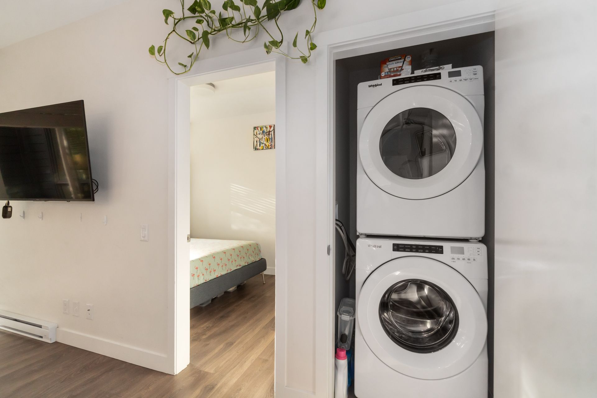 Step into this rare corner ground-floor residence that truly feels like a townhouse. Boasting the largest floor plan in the building, this home offers a seamless blend of style, comfort, and privacy. The spacious private patio opens directly onto a beautifully landscaped green garden, creating a peaceful outdoor retreat that’s perfect for morning coffee, evening relaxation, or entertaining guests.